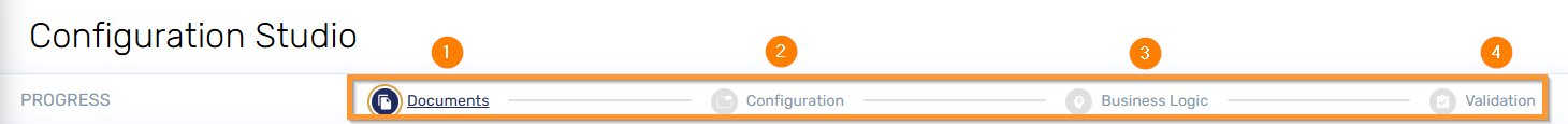 Configuration Studio is structured into four steps, displayed in the top navigation bar. Each step below provides a curated list of resources to guide you through the process.