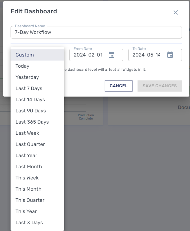 Changing the timeframe with the above steps will change the timeframe for all widgets on the current dashboard.