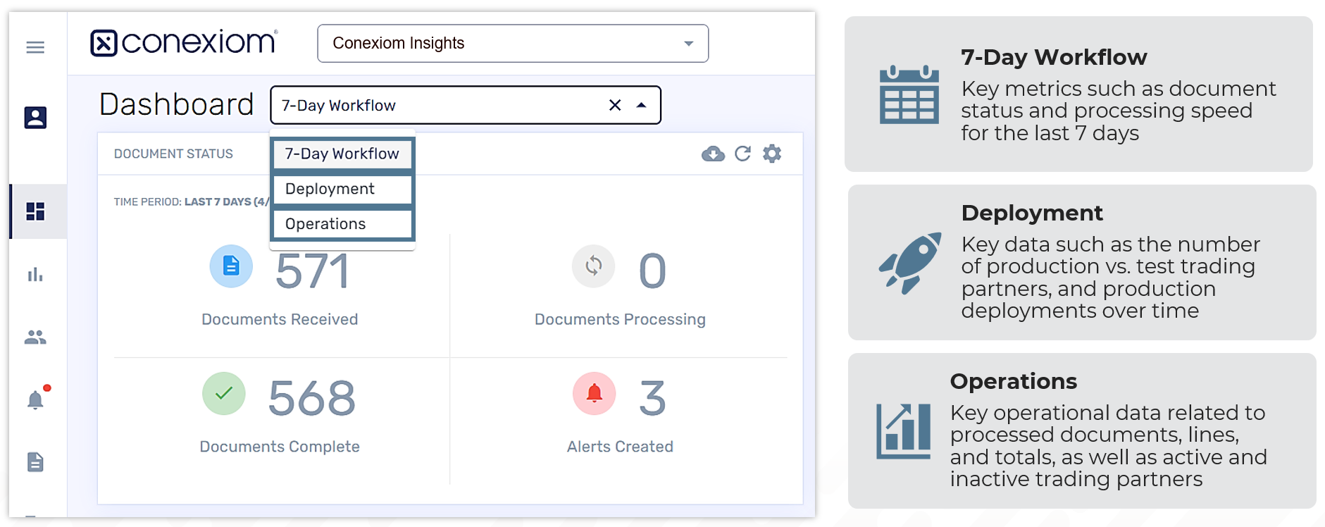 Note: New Navigator features also produce operational statistics and graphic representations of them. If your organization has Navigator, click here for more information on your trading partners' performance.