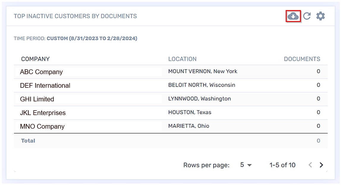 Compare the Customers by Alerts widget against Top Customers by Documents widget.