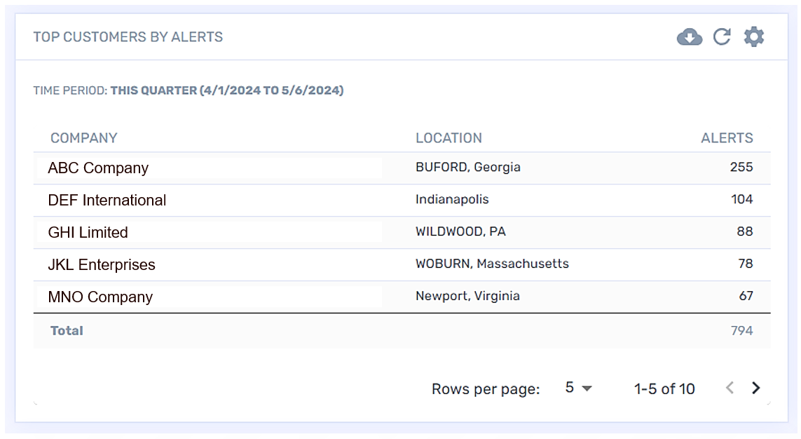 It is common for the Top Customers by Documents to have higher numbers of alerts.