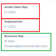 In the example above, C LEES is missing in the portal yet has been selected as the Inside Sales Rep, Implementer