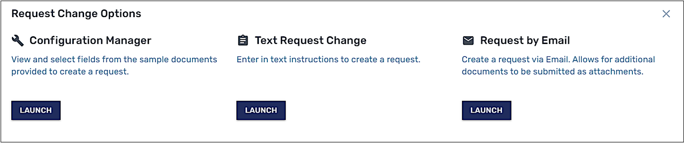 To launch a change request without selecting one or more of the listed documents, click Options and from the menu that displays, select Request Change.